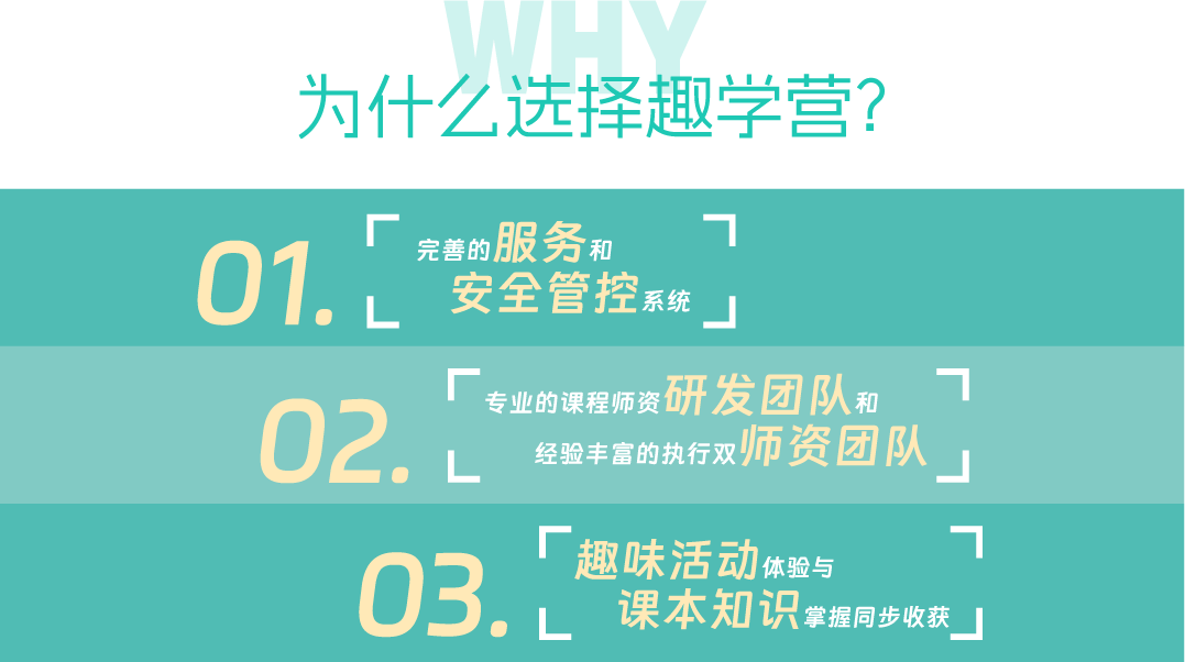 趣学营是一家基于STEAM教学体系的新锐青少年服务平台,致力于为孩子打造优质的综合实践活动!自主研发“趣科创”&“趣演绎”&‘趣竞技“三大系列产品,打造基于PBL教学方法的户外活动,助力青少年素质教育发展,让快乐学习自然发生!